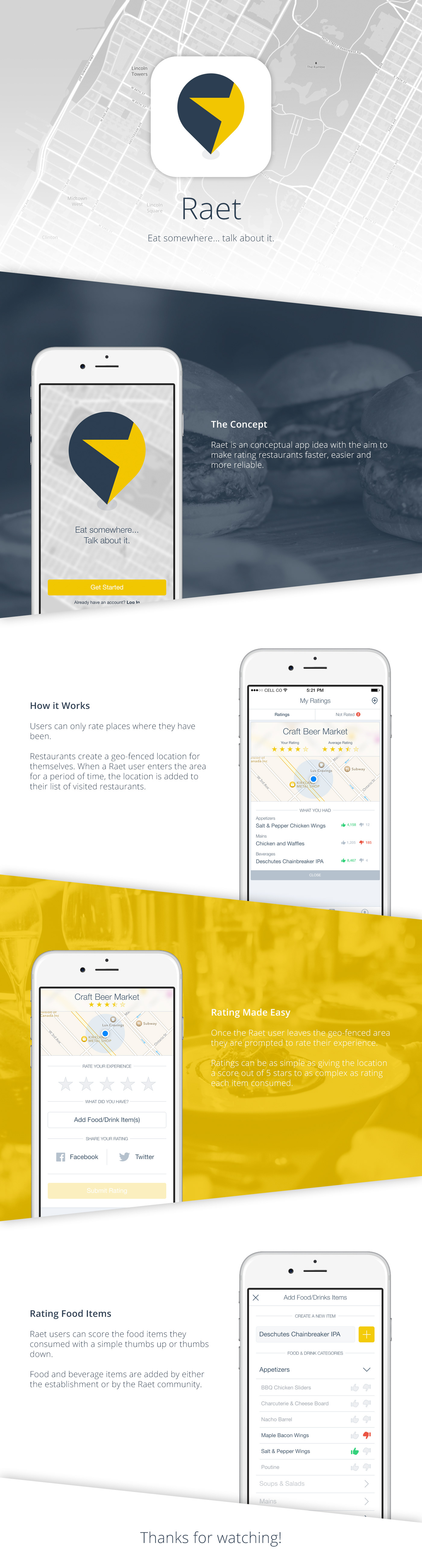 Raet is an app concept for rating restaurants and other food/beverage establishments.